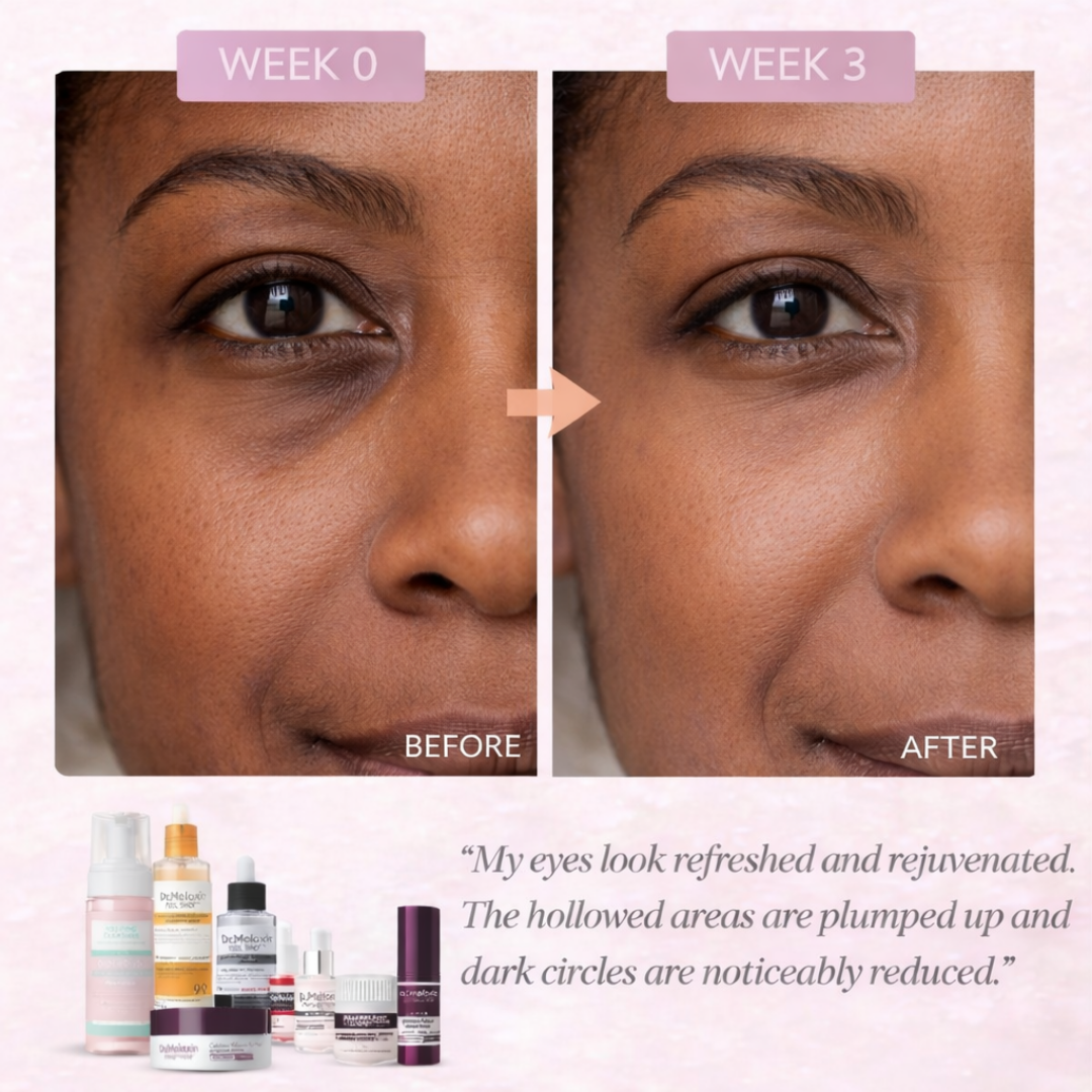 The Wrinkle Stick plumps sagging areas (jowls, neck creases). Eye patches target hollow under-eyes. Spicule Serum regenerates collagen for firmness. Combined, they address the drooping, tired look significantly within 3-4 weeks.